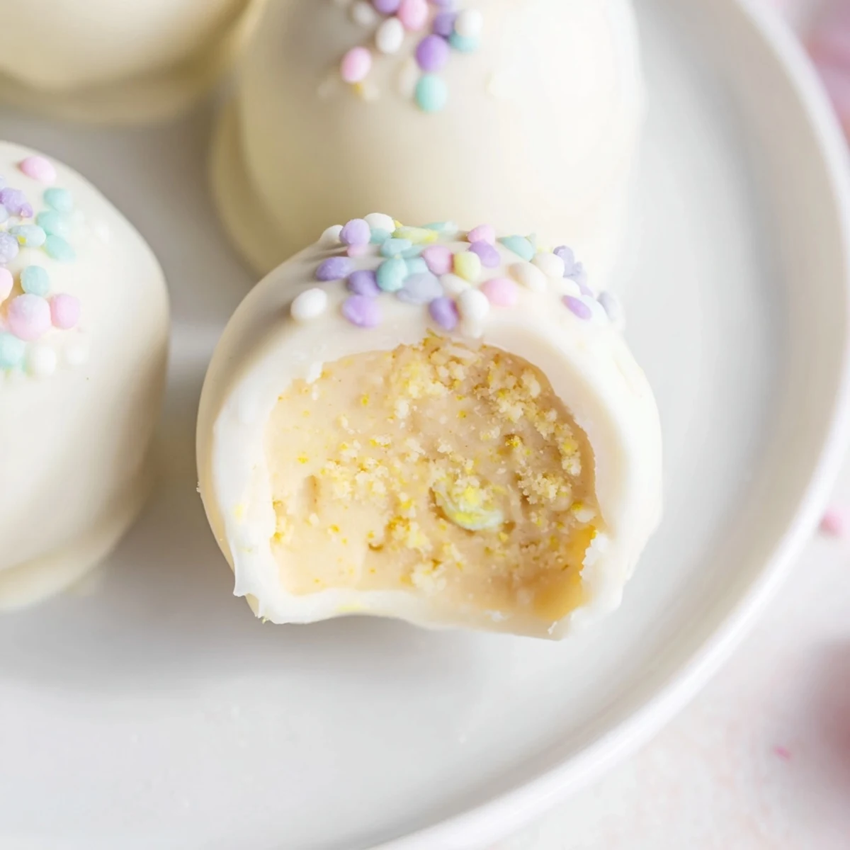 Arrange these in a pretty Easter basket lined with parchment paper for the ultimate festive display. The contrast of white chocolate against pastel sprinkles creates such an inviting presentation.