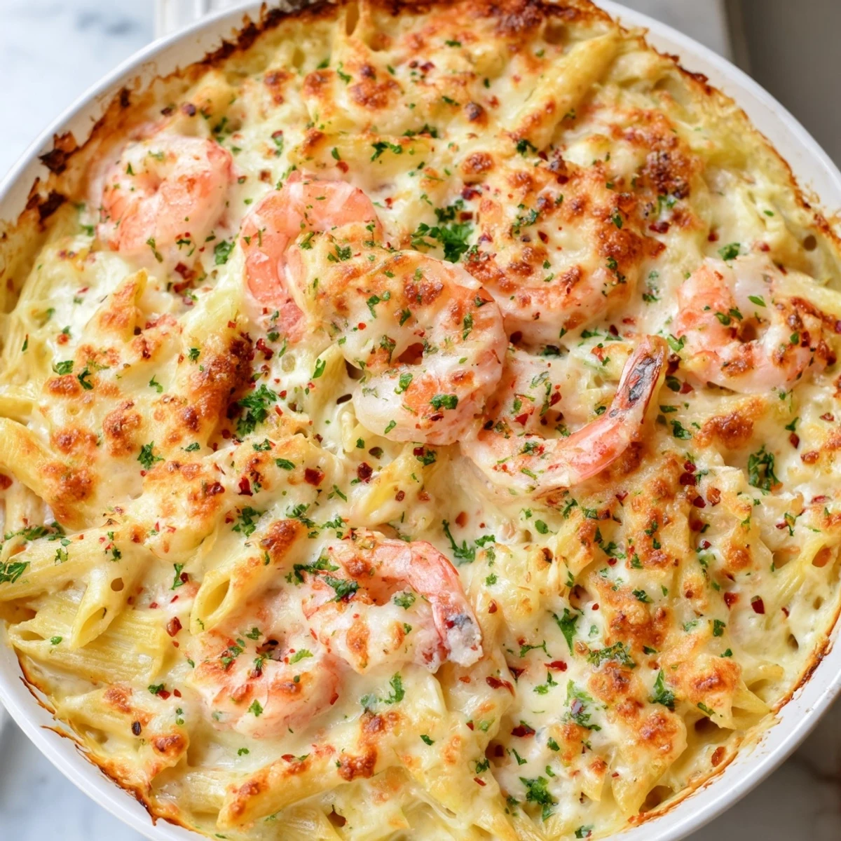 This comforting Italian-inspired bake combines al dente penne with plump, juicy shrimp simmered in a rich lemon-garlic cream sauce. The dish emerges from the oven with a bubbling golden parmesan and mozzarella crust that adds delightful texture to every forkful. Perfect for family dinners or entertaining, the flavors meld beautifully while the white wine and fresh herbs elevate this classic seafood pasta beyond ordinary weeknight fare.