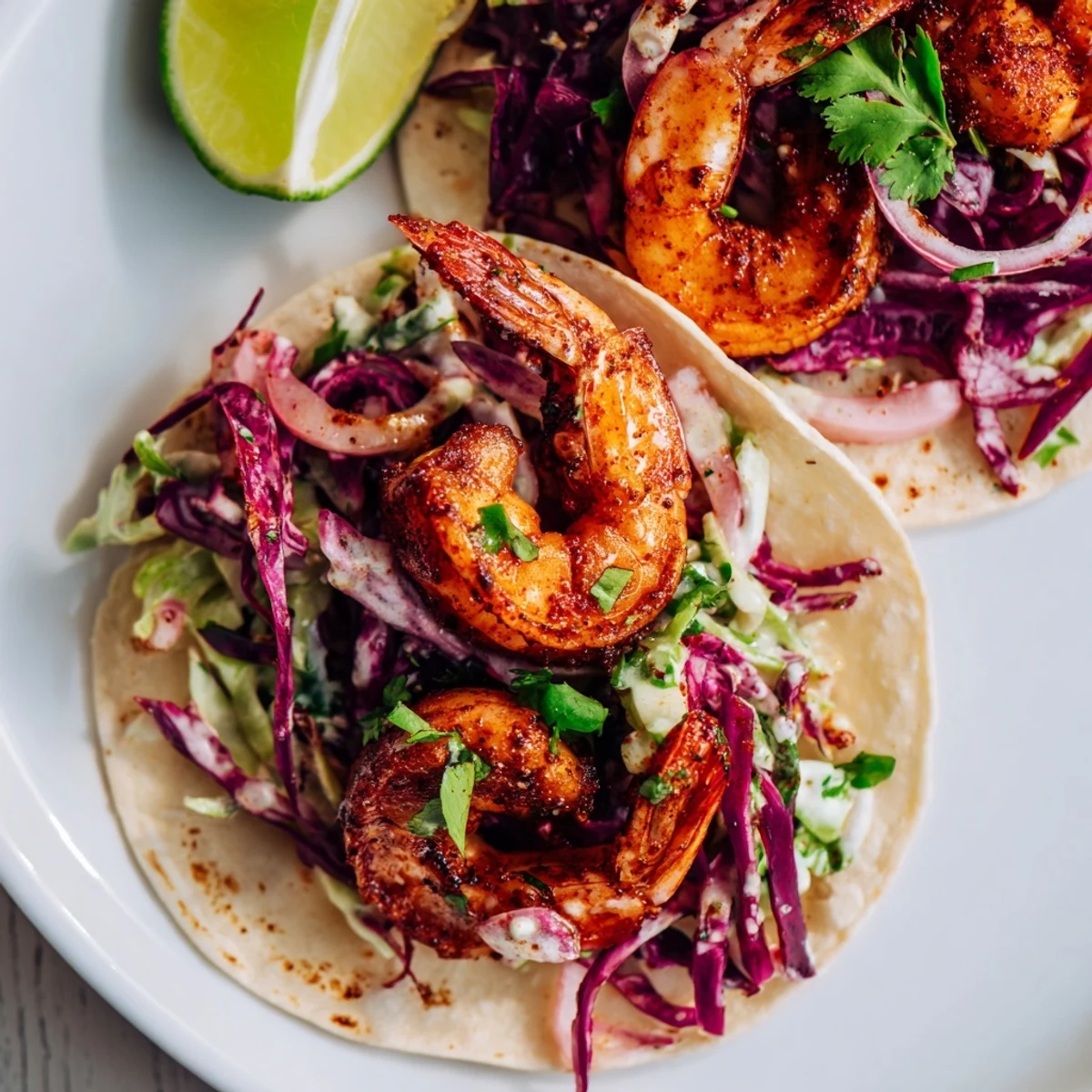 - Pile the shrimp and slaw into warm tortillas, then add whatever extras make you happy—lime wedges, jalapeños, extra cilantro. Serve them right away while everything is still warm and crisp.